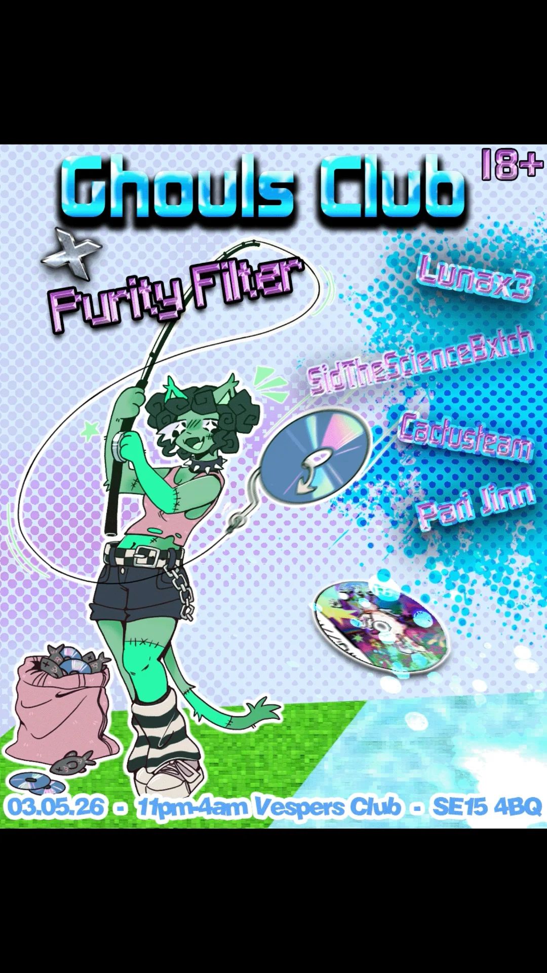 *ੈ✩‧₊˚🦴. ݁₊ ⊹ . ݁˖ . ݁🧟♀️°*ੈ✩‧₊˚⭐. ݁₊ ⊹ . ݁˖ . ݁*ੈ✩‧₊˚⭐. ݁₊ ⊹ . ݁🧟♀️˖ . ݁°*ੈ✩‧₊˚🦴. ݁₊ ⊹ . ݁˖ . ݁ ⭐° SUN 3RD MAY ⭐Ⰶ 11PM-4AM ⭐VESPERS ⭐✿ SE15 4BQ *ੈ✩‧₊˚🦴. ݁₊ ⊹ . ݁˖ . ݁🧟♀️°*ੈ✩‧₊˚👻. ݁₊ ⊹ . ݁˖ . ݁*ੈ✩‧₊˚👻. ݁₊ ⊹ . ݁🧟♀️˖ . ݁°*ੈ✩‧₊˚🦴. ݁₊ ⊹ . ݁˖ . ݁ 🎵DJs; PURITY FILTER, LUNAx3, SIDTHESCIENCEBXTCH, CACTUSTEAM, PARIJINNᓚ₍⑅^..^₎♡ 🎧Nightcore✩Jumpstyle✩Breakcore✩DnB✩Donk✩Dariacore✩Hardtekk✩Jersey✩Nxc✩Eurobeat Hyperpop✩Makina✩JCore✩Cloudrap✩Hardstyle✩Hyperlip✩Gabber✩Happy Hardcore +MORE!🎧 ﮩ٨ـﮩﮩ٨ـ♡ﮩ٨ـﮩﮩ٨ـﮩ٨ـﮩﮩ٨ـ♡ﮩ٨ـﮩﮩ٨ـﮩ٨ـﮩﮩ٨ـ♡ﮩ٨ـﮩﮩ٨ـﮩ٨ـﮩﮩ٨ـ♡ﮩ٨ـﮩﮩ٨ـ ⋆。°✩𝞹⭐° ⋆。°✩What to Expect⋆。°✩𝞹⭐° ⋆。°✩ ˚₊· ͟͟͞͞➳❥ Live DJs and musicians ‧₊˚♪ 𝄞₊˚⊹ Vendors °❀.ೃ࿔* Claw and Gumball machine ୭ 🧷 ✧ ˚. ᵎᵎ 𝞹 ദ്ദി(˵ •̀ ᴗ - ˵ ) ✧Cosplay -ˋˏ✄┈ Loud, fast and cunty music ₊˚ʚ ᗢ₊˚✧ ゚. ₍ꕤᐢ..ᐢ₎ ﮩ٨ـﮩﮩ٨ـ♡ﮩ٨ـﮩﮩ٨ـﮩ٨ـﮩﮩ٨ـ♡ﮩ٨ـﮩﮩ٨ـﮩ٨ـﮩﮩ٨ـ♡ﮩ٨ـﮩﮩ٨ـﮩ٨ـﮩﮩ٨ـ♡ﮩ٨ـﮩﮩ٨ـ ୨୧ Dress code: Magical Undead!! Be creative:p Encouraged not required! Everyone is entered into our best dressed prize draw :DD /\___/\ ꒰ ˶• ༝ - ˶꒱ ./づ~⭐° Follow our Instagram for more updates on deals and giveaways! Limited tickets available on the door